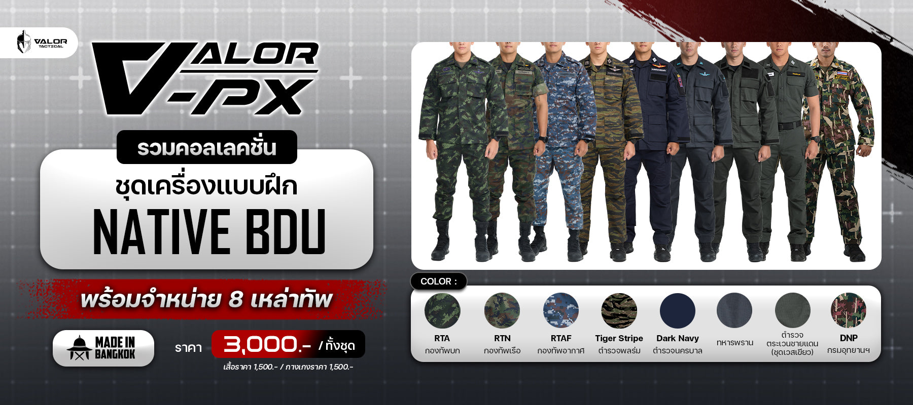 ![เสื้อทหาร VALOR PX - Native BDU Shirt [Tiger Stripe] เสื้อฝึก ตำรวจพลร่ม](http://valortacticalstore.com/cdn/shop/files/VALORPX_Native_BDU_Tiger_Stripe-01.png?v=1763114534&width=900)