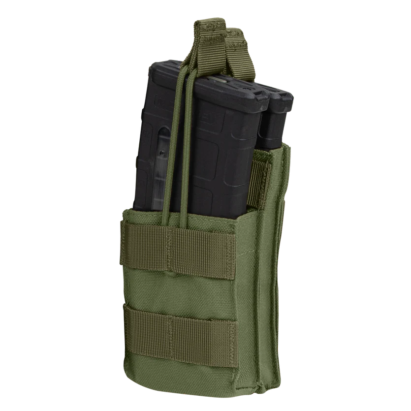 The Condor Stacker Mag Pouch is a simple yet effective system to carry your AR/M4 magazine. It utilizes the open-top design with bungee cords to hold the mags in place.