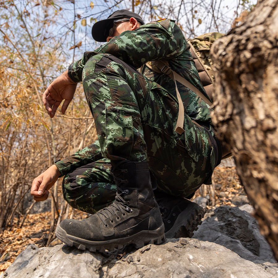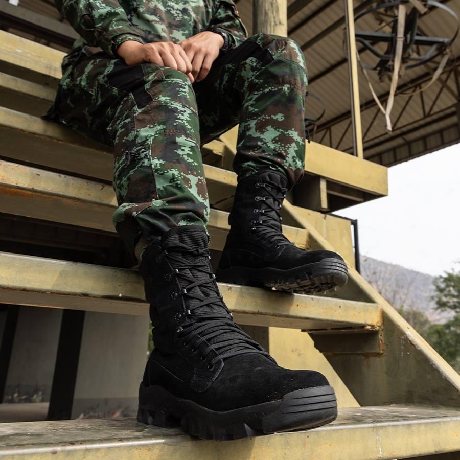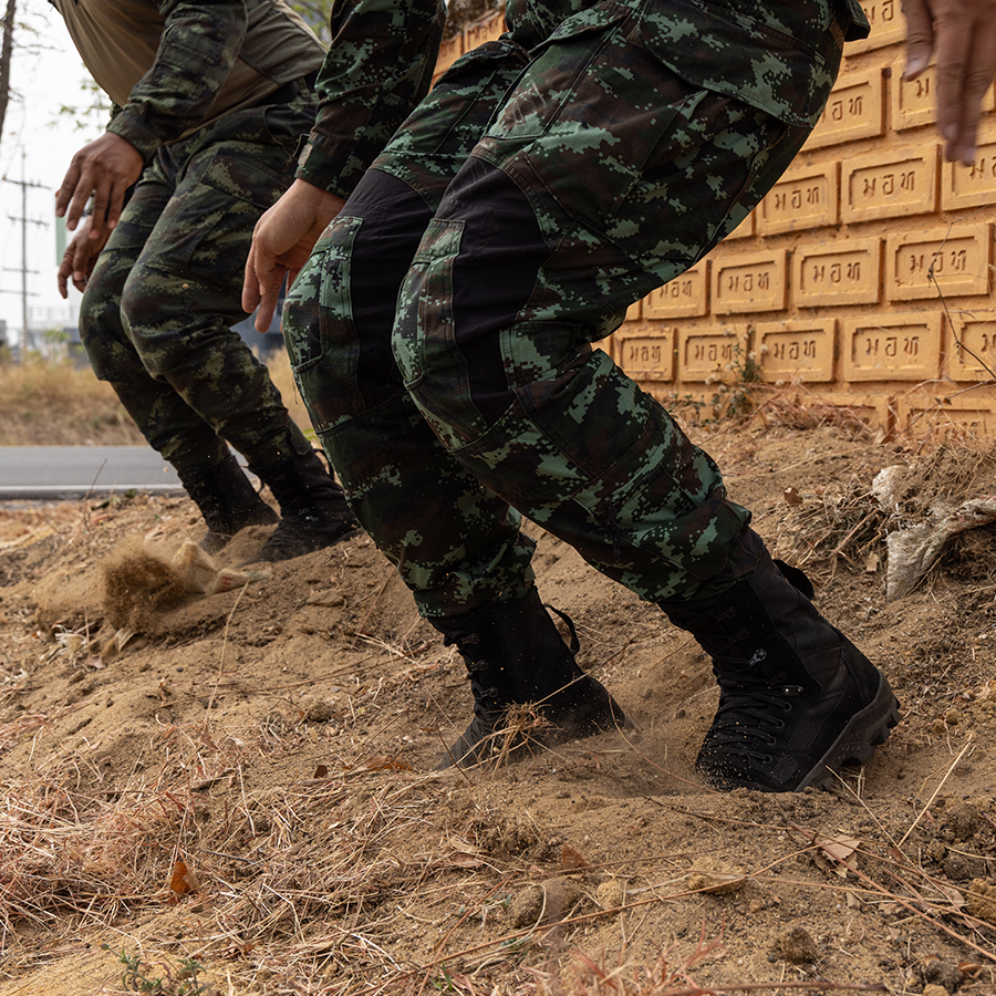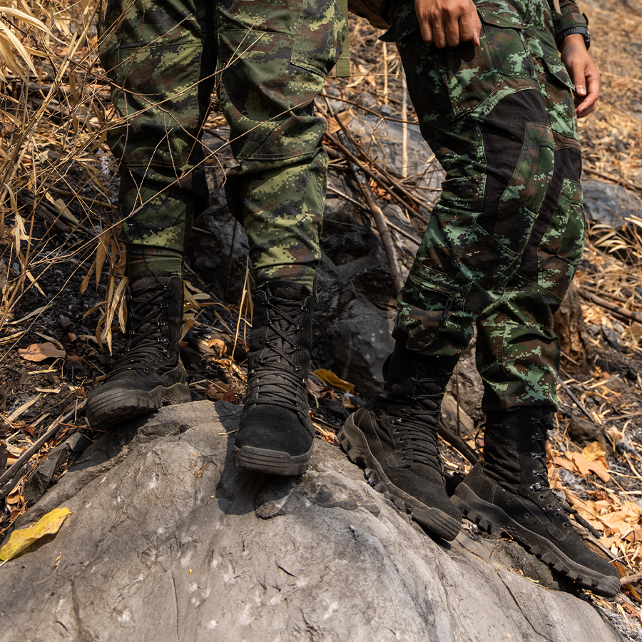 - รองเท้าบูทยุทธวิธีหนังกลับความหนา 1.8 มม. เสริมแผ่นโพลีเอสเตอร์