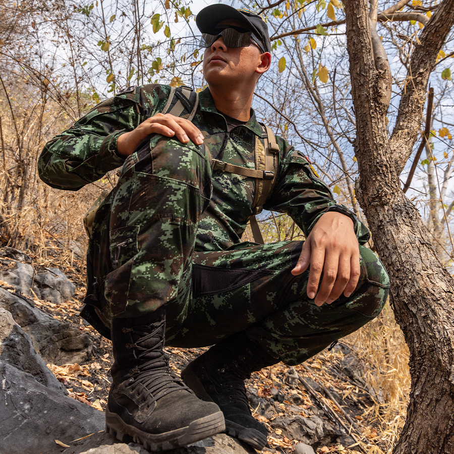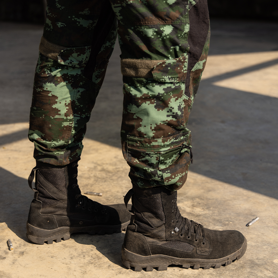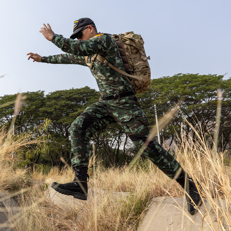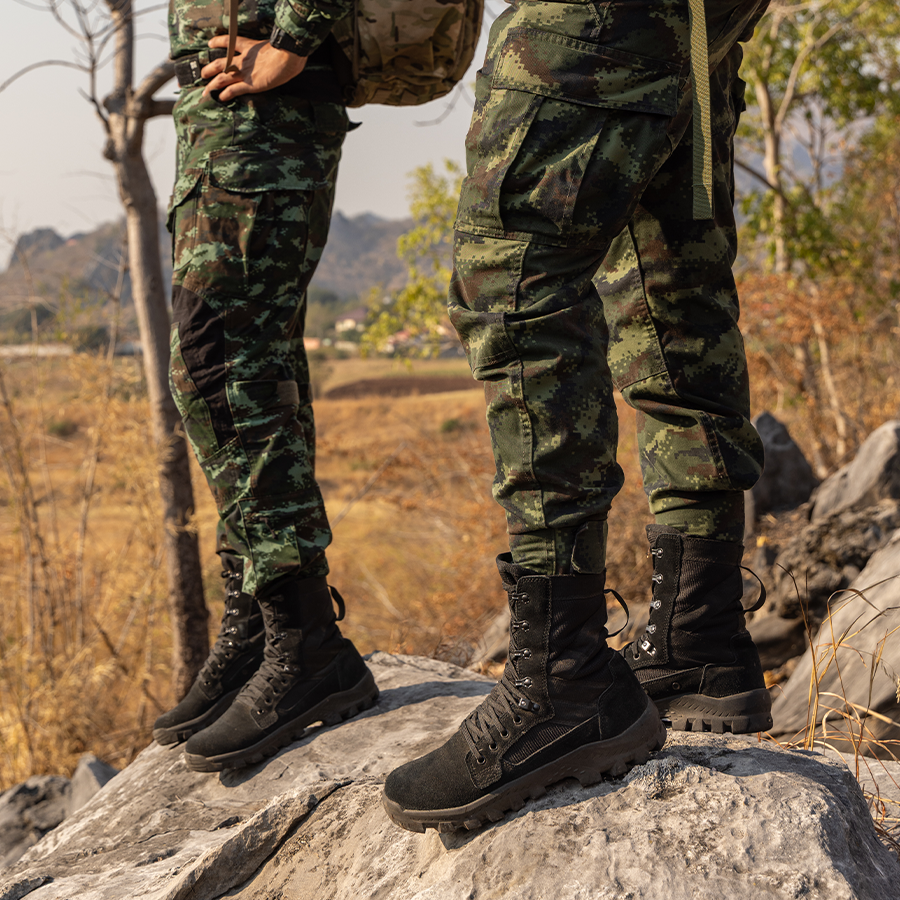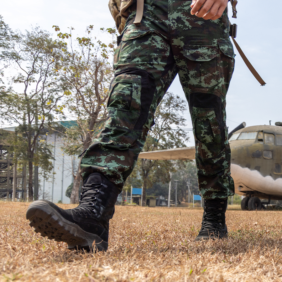 - รองเท้าบูทยุทธวิธีหนังกลับความหนา 1.8 มม. เสริมแผ่นโพลีเอสเตอร์