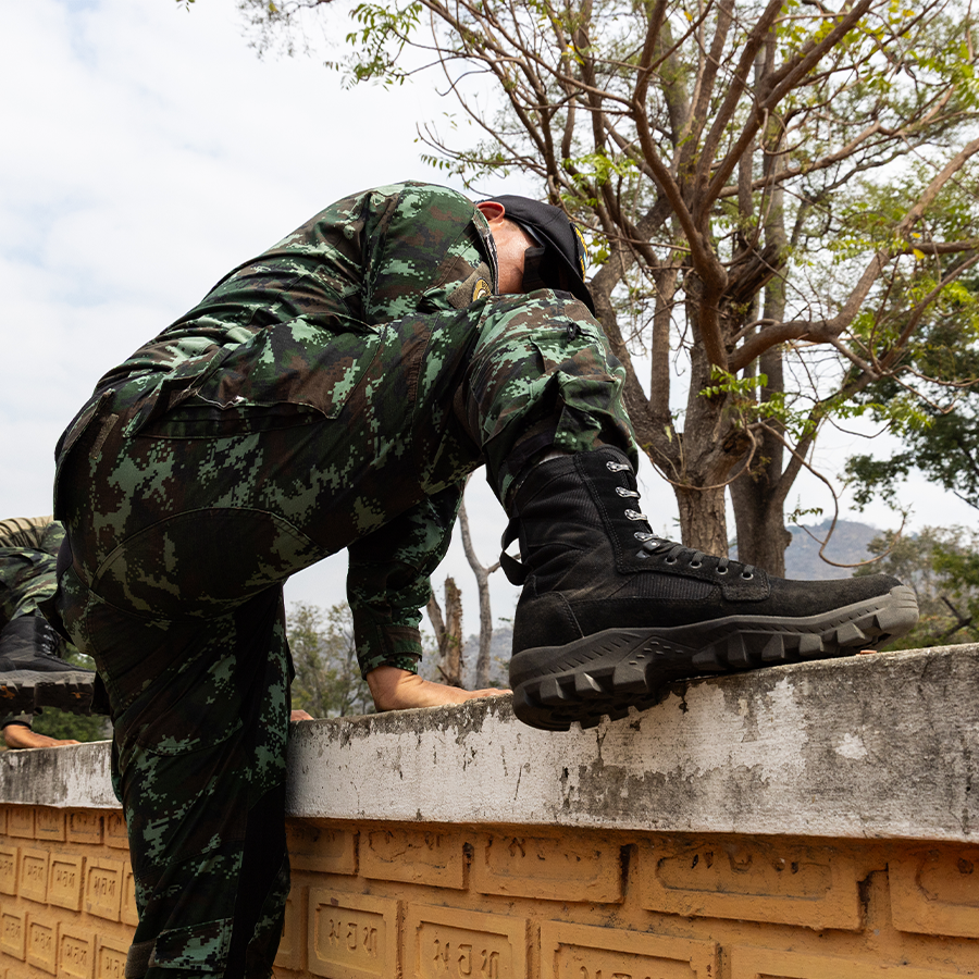 ถูกออกแบบมาเพื่อตอบสนองการใช้งานในสนามรบโดยเฉพาะ เป็นรองเท้ายุทธวิธีทางการทหารที่มีความโดดเด่นในด้านการใช้งานบนพื้นโคลน พื้นทะเลทราย พื้นทางลาดชัน และ พื้นผิวที่เป็นหิน เรียกได้ว่าครอบคลุมทุกสภาพพื้นผิวการทำงาน อีกทั้งยังถูกออกแบบมาเพื่อการปฏิบัติทั้งในน้ำและบนบก รวมไปถึงสภาพแวดล้อมที่มีความเปียกชื้น ตัวรองเท้าใช้เทคโนโลยีพื้นรองเท้าชั้นนอก VIBRAM® เพื่อเสริมประสิทธิภาพในด้านการยึดเกาะ ความสมดุล และ ป้องกันแรงกระแทก เหมาะสำหรับเจ้าหน้าที่ทหาร, หน่วยงานรักษากฎหมาย และ Outdoor Professionals เป็นหนึ่งในรองเท้าบูททางยุทธวิธีประสิทธิภาพสูงที่ไว้ใจได้ที่สุดสำหรับการการปฏิบัติงานในสภาพแวดล้อมแบบสุดขั้ว