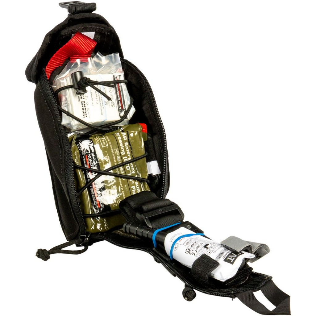 The IFAK set includes a quick release that can be pulled for immediate use with one hand.