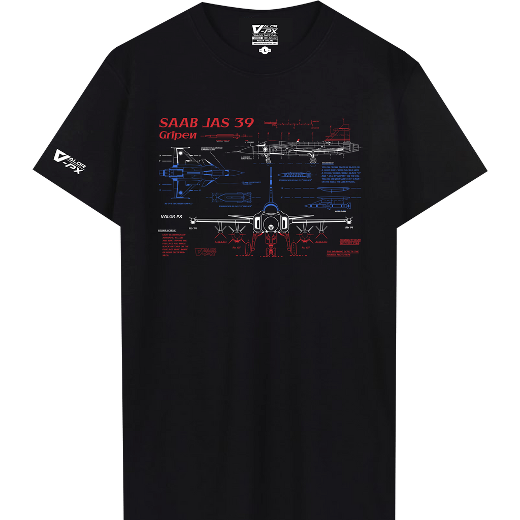 เสื้อยืดสกรีนลาย VALOR PX - Blueprint Gripen Saab JAS 39 T-Shirt เสื้อใส่เที่ยว ลายกราฟิก
