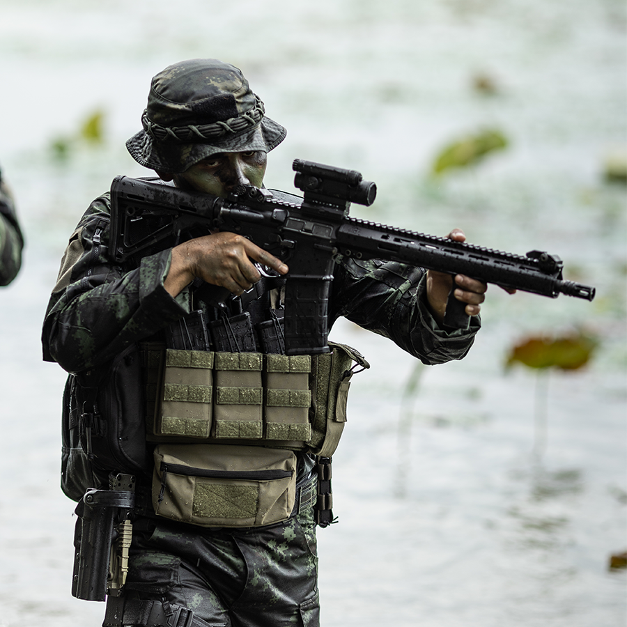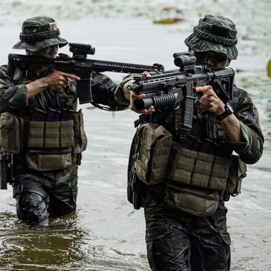 Magazine pouch 556 3 slots that can be inserted with kydex inner to lock the magazine tightly. And can also be threaded with elastic straps to tie on top to create a double lock to prevent the magazine from being lost.