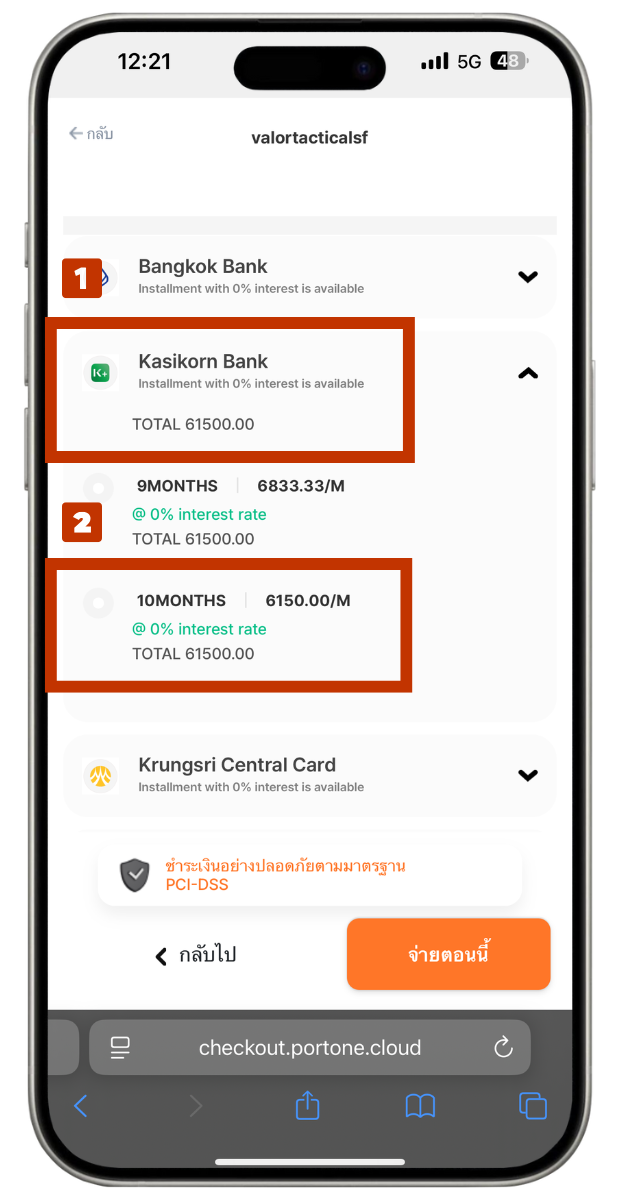 ผ่อนชำระกับธนาคารกรุงเทพ กสิกรไทย กรุงไทย ไทยพาณิชย์ บัตรเครดิตในเครือกรุงศรีคอนซูมเมอร์ หรือบัตรเฟิร์สช้อยส์