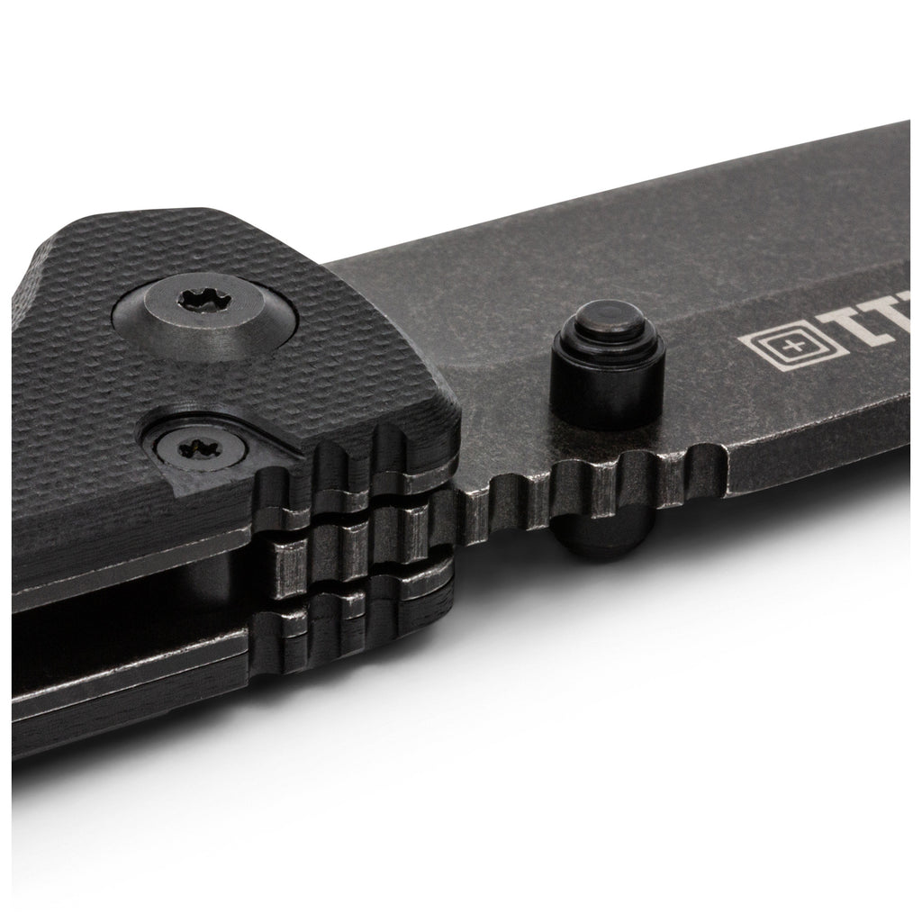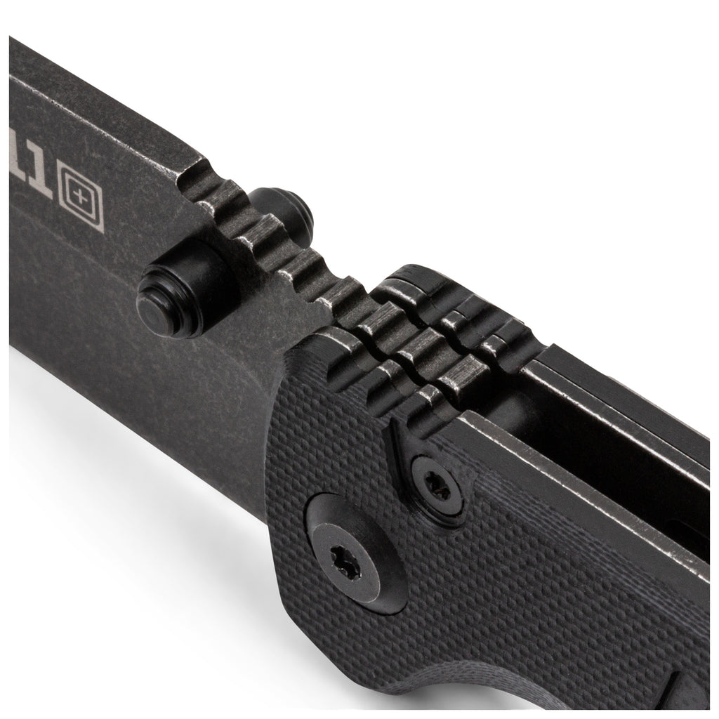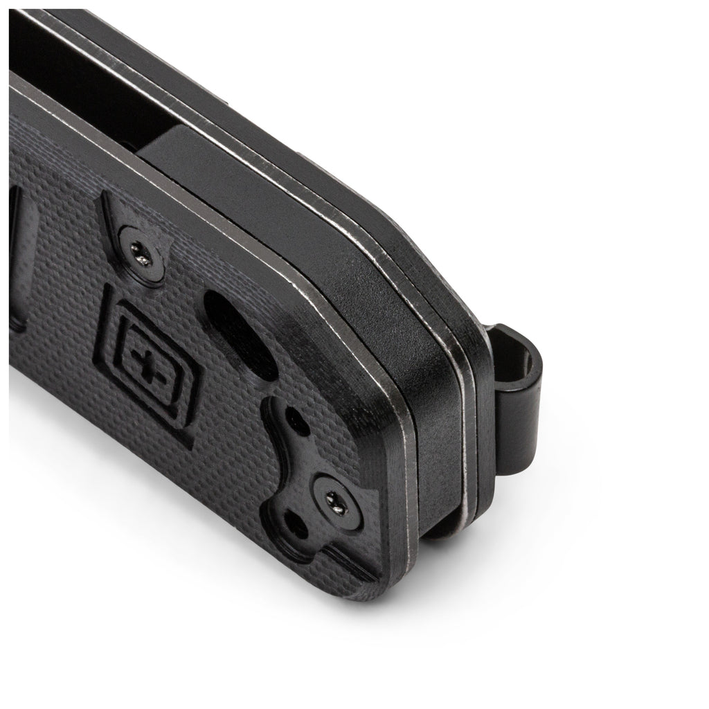 ส่วนด้ามจับของมีดใช้วัสดุ G10 มอบการจับที่กระชับมั่นคงและระบบล็อกใบมีดแบบ Liner Lock เพื่อความปลอดภัยของผู้ใช้งาน ความหนาใบมีด 2.7 มม. และ คลิปสำหรับเหน็บแบบ Deep-carry เพื่อการพกพาที่แนบเนียนไปกับ เข็มขัดยุทธวิธี เพื่อให้พร้อมรับมือกับความท้าทายในทุก ๆ วัน