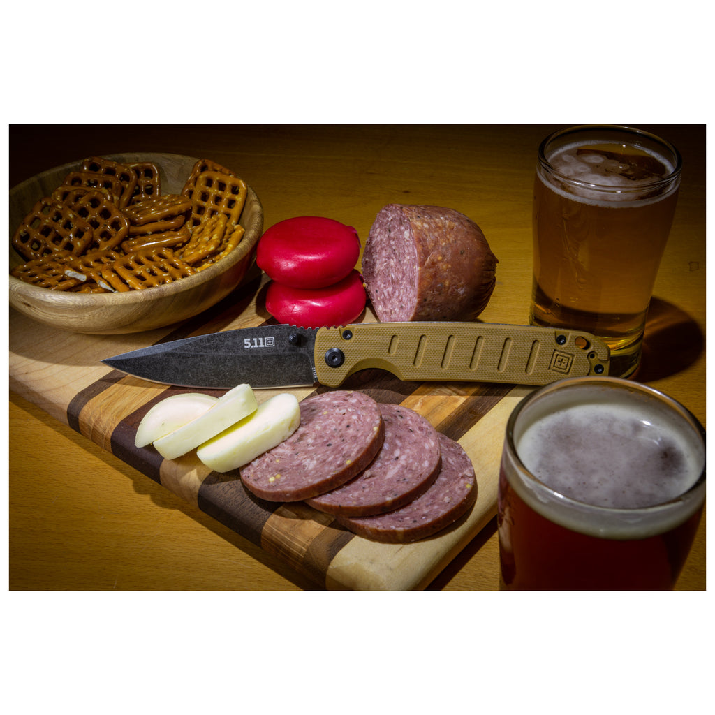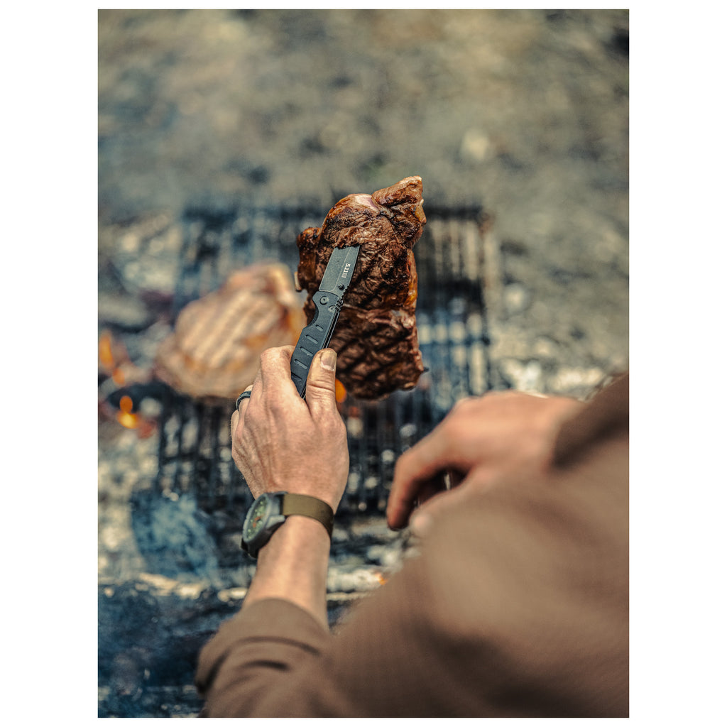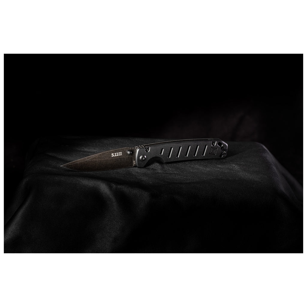 ส่วนด้ามจับของมีดใช้วัสดุ G10 มอบการจับที่กระชับมั่นคงและระบบล็อกใบมีดแบบ Liner Lock เพื่อความปลอดภัยของผู้ใช้งาน ความหนาใบมีด 2.7 มม. และ คลิปสำหรับเหน็บแบบ Deep-carry เพื่อการพกพาที่แนบเนียนไปกับ เข็มขัดยุทธวิธี เพื่อให้พร้อมรับมือกับความท้าทายในทุก ๆ วัน