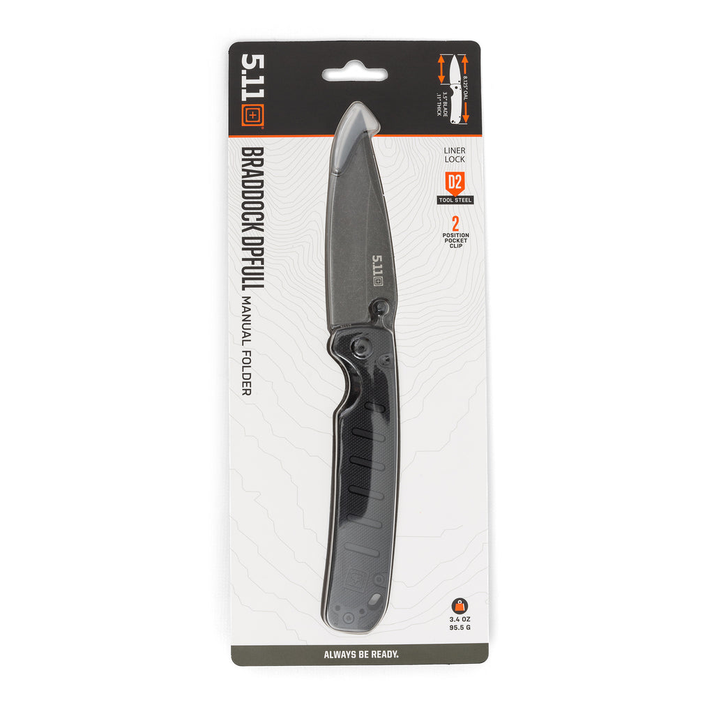มีดพับ Braddock DP Knife Full มีดพับ ที่มาพร้อมฟังก์ชั่น ตอบสนองต่อการใช้งานในชีวิตประจำวัน ใบมีดทรง Drop-point ขนาด 3.5 นิ้ว พร้อมวัสดุใบมีดเหล็กกล้า D2 Steel คุณสมบัติความแข็งแรงสูงและรักษาคมมีดไว้ได้ยาวนาน ออกแบบมาเพื่อความคล่องตัวในการใช้งาน ซึ่งเหมาะสำหรับเป็น มีดพับ ที่สามารถพกพาไปได้ทุกวัน ไม่ว่าจะเหน็บไว้กับ กางเกงปฏิบัติการ หรือ พกไว้ในเป้สนาม