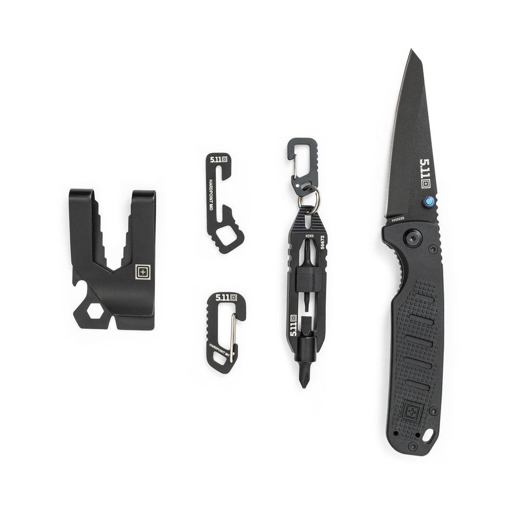 ชุดอุปกรณ์ มัลติทูล EDC Limited edition ปี 2024 Covert Gift Set จาก 5.11 Tactical ที่ได้รวมอุปกรณ์ที่สำคัญและสามารถพกพาได้ในทุก ๆ วัน (EDC) รวมเข้าไว้ด้วยกันภายในชุดเดียวทั้ง มีดพับ Icarus RT Mini มีดพับ รูปทรง Reverse Tanto, คลิปสำหรับหนีบเงินสด Steel Jacket Money Clip ที่มาพร้อมฟังก์ชั่นการใช้งานที่ซ่อนไว้มากมาย, ไขควงพกพา DT Hex และที่น่าจะเป็นสิ่งที่มีประโยชน์มากที่สุดของชุด Gift Set นี้ คาราบิเนอร์ Hardpoint M1+ MD สำหรับเพิ่มจุดติดตั้งไม่ว่าจะเป็นบน MOLLE หรือ บนสายเว็บบิ้งขนาด 1 นิ้ว ของขวัญที่สาย Tactical ทุกคนต้องอยากได้ นี่คือของขวัญลับที่ซานต้าปิดไว้ไม่มิด