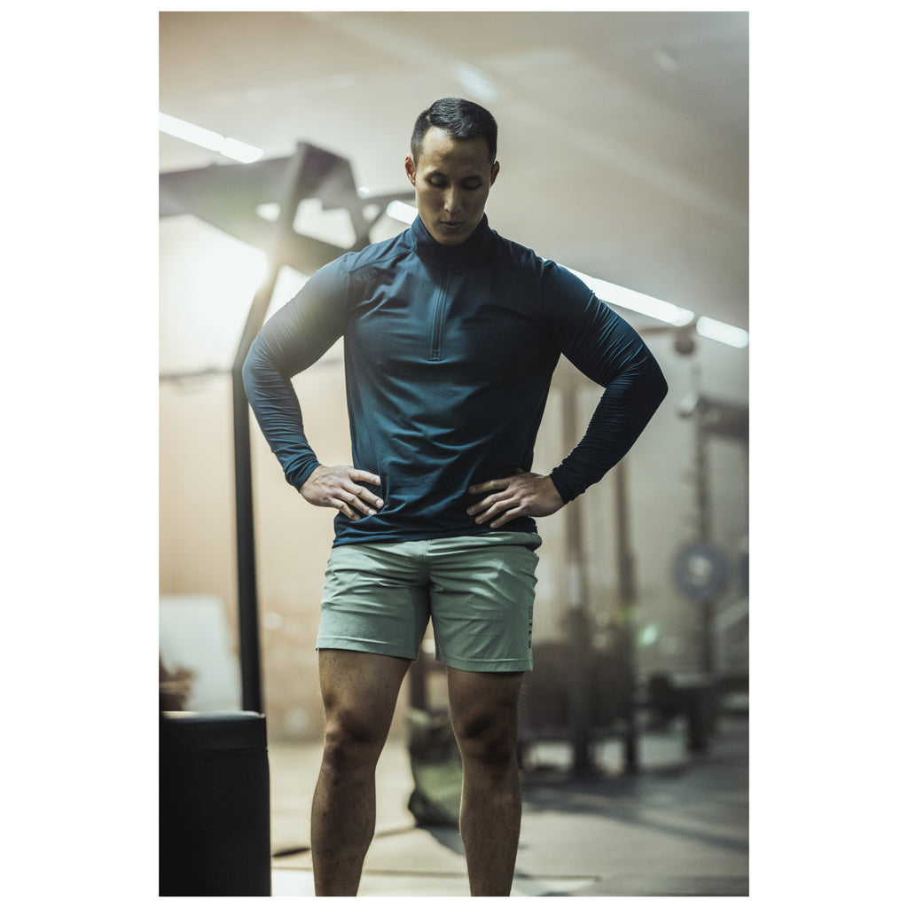 - Thermal Control: ปกเสื้อ Mock neck พร้อมช่องที่ปลายแขนเสื้อสำหรับสอดนิ้ว ให้คุณสมบัติในการป้องกันลมและรักษาอุณหภูมิในบริเวณแกนกลางลำตัว