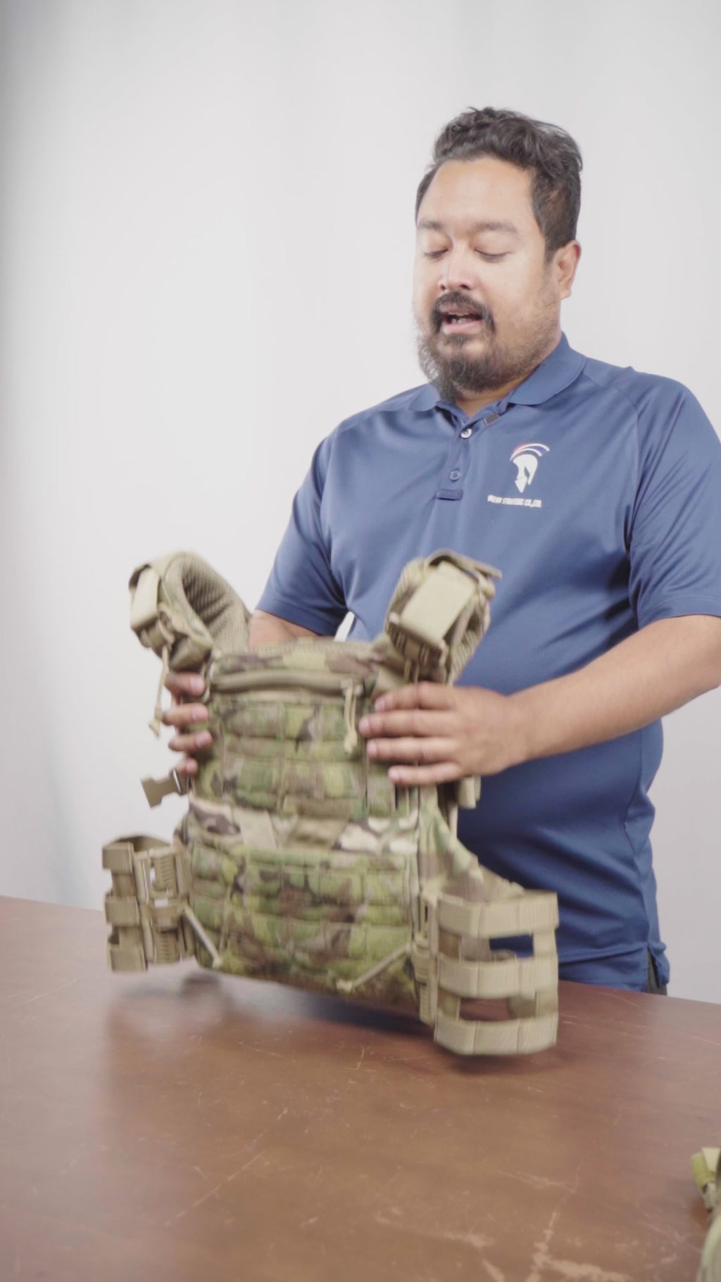 รองรับการใช้งานร่วมกับแผ่นเกราะขนาด S, M or L SAPI/ESAPI ความหนาสูงสุด 1.5”