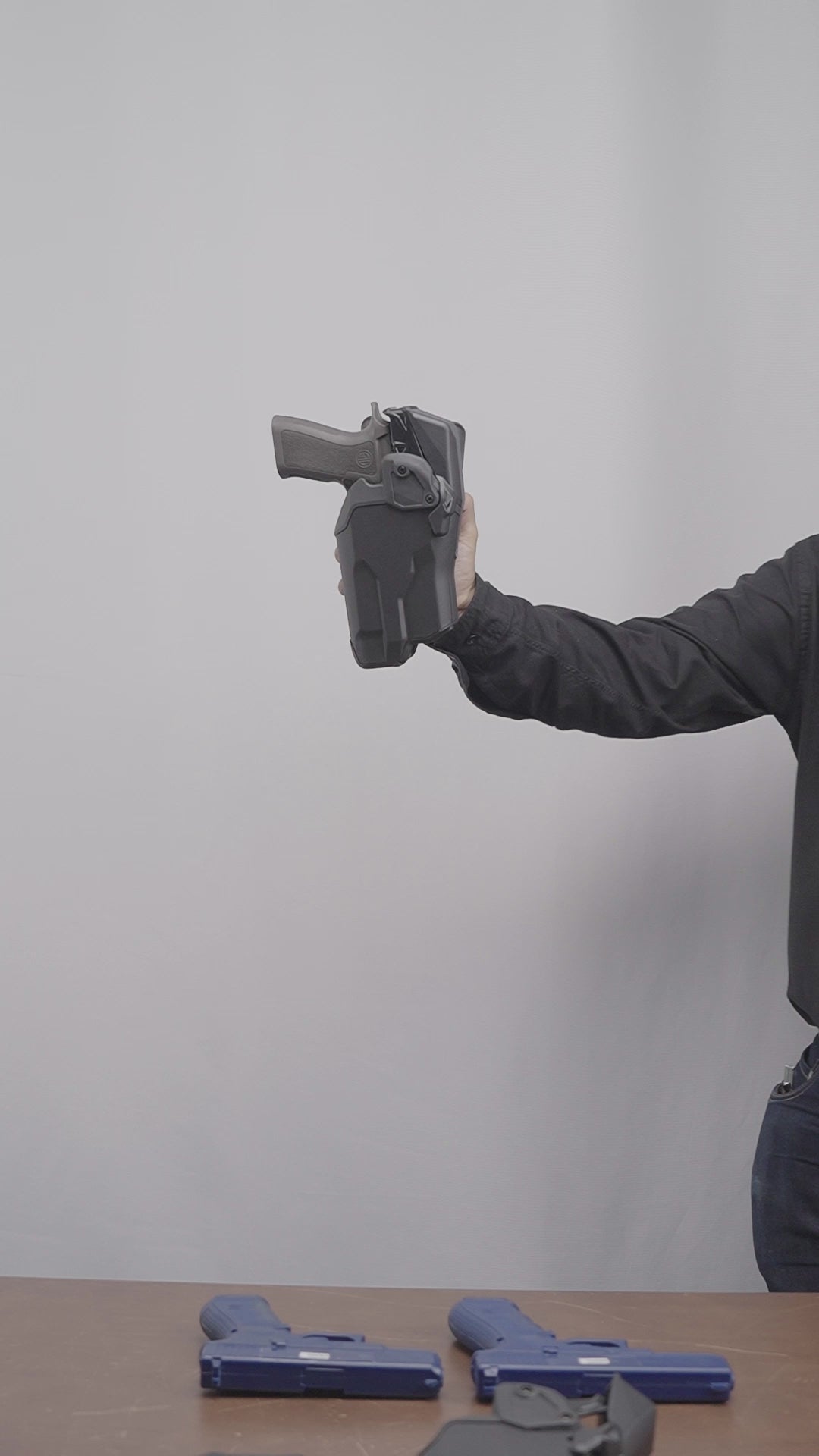 รูปแบบการใช้งาน 3 จังหวะ ในการปลดกลไกการล็อคอาวุธจากซองปืน