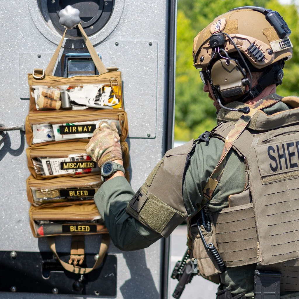 NAR® Mini Trauma Sheet กระเป๋าแพทย์สนามในรูปแบบแผงแบบม้วน เพื่อการพกพาได้อย่างสะดวกในขนาดกะทัดรัด ออกแบบมาเพื่อรองรับการจัดเก็บอุปกรณ์ช่วยชีวิต, อุปกรณ์ปฐมพยาบาลที่จำเป็น และสามารถปรับเปลี่ยนการพกพาได้ตามความต้องการเฉพาะทางของภารกิจ ม้วนได้เพื่อความสะดวกในการจัดเก็บและพกพา หรือแขวนประจำตำแหน่งบนยานพาหนะประจำหน่วยเช่น รถพยาบาล, รถยนต์ หรือเครื่องยนต์อากาศยาน เพื่อความคล่องตัวและการเข้าถึงที่รวดเร็ว